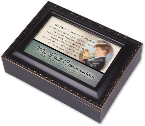 -. Feature : Cottage Garden My First Communion Distressed Black Music Box / Jewelry Box Plays Hallelujah / black