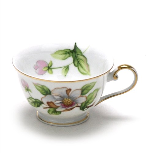 -. Feature : Dogwood by Roselyn, China Cup, Active Pattern: No, Circa: Unknown, Size: 4-5/8" Long, 3-3/4" Rim Diameter, 2" Base Diameter, 2-1/8" High, Dogwoods on a white plate with gold trim., Perfect for drinking coffee and tea.
