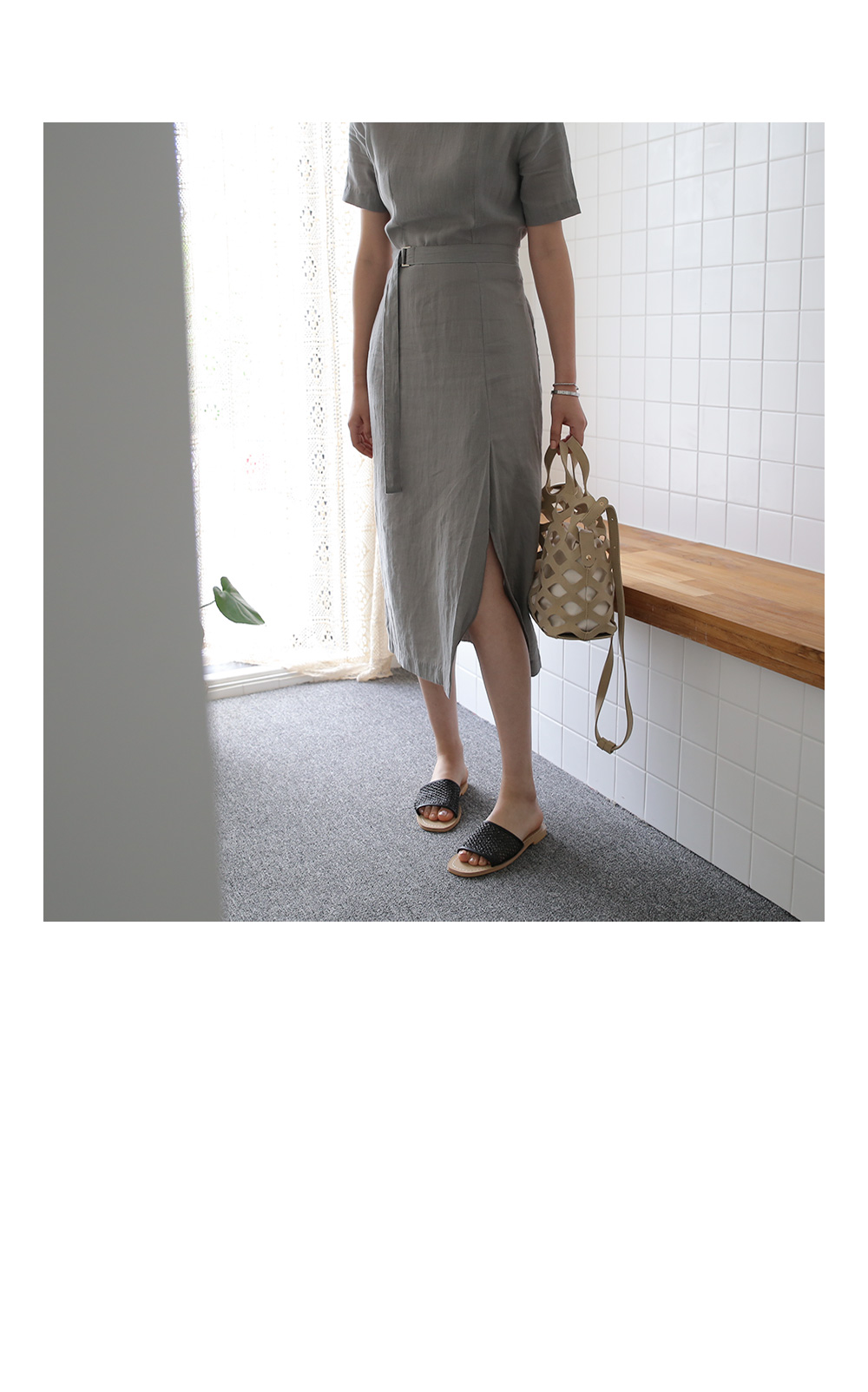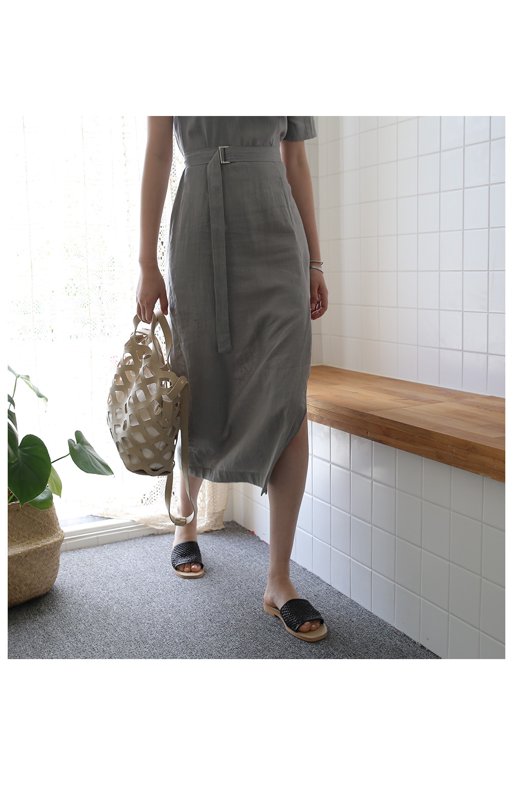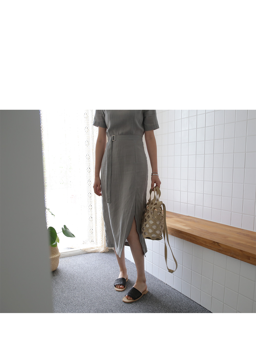 요 원피스는 너무나 쿨하고 깔끔한 디자인과 린넨 소재가 더해져 포멀한 느낌도 들면서 미니멀한 디자인이라 일상복으로도 좋답니다