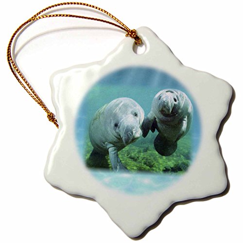 3dRose orn_39647_1 2 Manatees looking at You Snowflake Decorative Hanging Ornament, Porcelain, 3-Inch