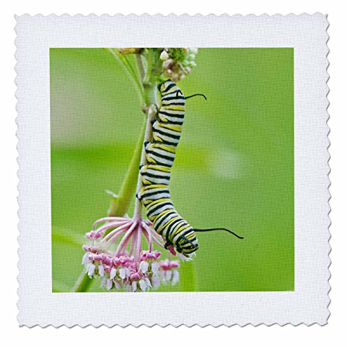 3dRose Monarch Butterfly Caterpillar on Swamp Milkweed, Marion Co. Il - Quilt Square, 6 by 6-Inch (qs_209652_2)