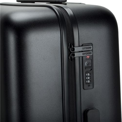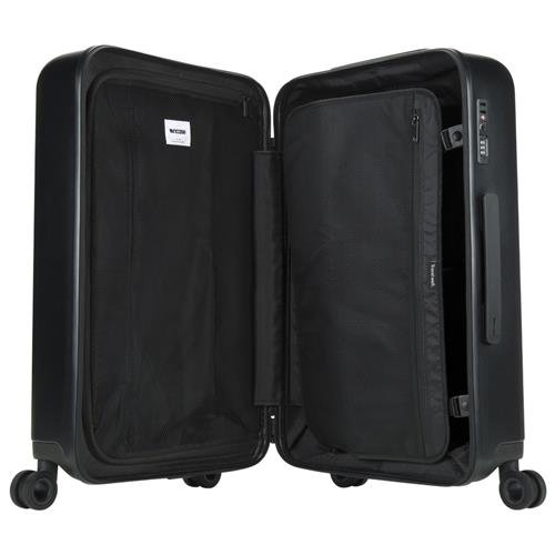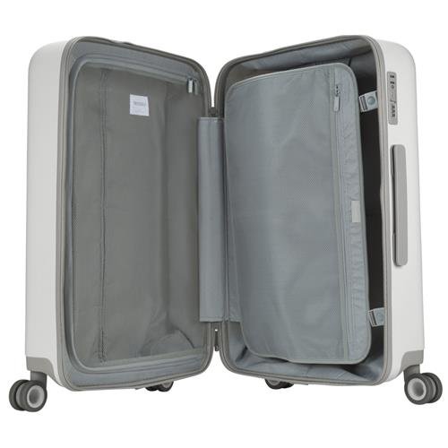Product Description Travel well with Novi, the future of hardshell rollers. Constructed from class-A makrolon polycarbonate shell, polyester jacquard interior liner and removable, smooth glide wheels, it's engineered for performance. It features a spacious main compartment with an integrated TSA approved lock and comes equipped with interior mesh pockets, included laundry bag and protective nylon covering. 0
