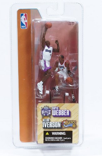 -. Binding : Toy -. Brand : Sports Picks -. Feature : Allen Iverson, Philadelphia 76ers G, No. 3 and Chris Webber, Sacramento Kings F, No. 4 / Figures stands approximately 3 inches tall before being displayed on its base. / Originally released in 2004 - Retired / Out of production / Ages 5 and up / From McFarlane Toys -. IsAdultProduct : 0 -. Label : Mattel -. Manufacturer : Mattel -. ProductGroup : Toy -. ProductTypeName : TOYS_AND_GAMES -. Publisher : Mattel -. Studio : Mattel -. Title : ALLEN IVERSON / PHILADELPHIA 76ERS & CHRIS WEBBER / SACRAMENTO KINGS * 3 INCH * McFarlane's NBA Sports Picks Series 1 Mini Figure 2-Pack -. UPC : 787926751116