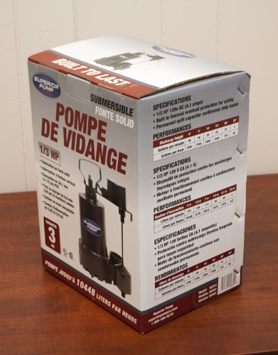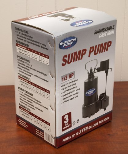 Superior Pump 92341 1/3 HP CAST IRON Sump Pump Side Discharge with VERTICLE Float Switch