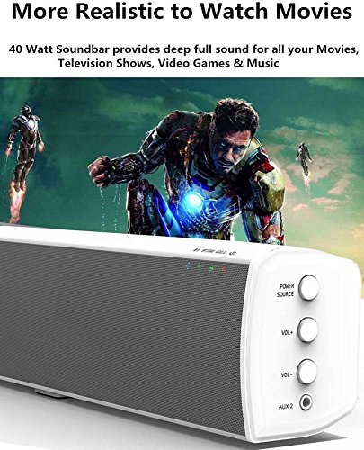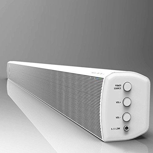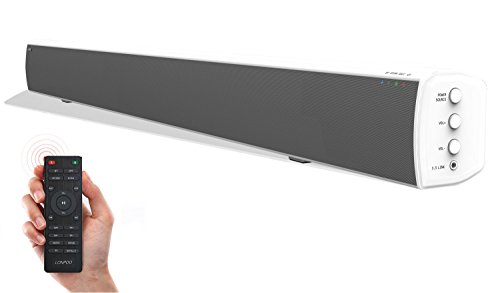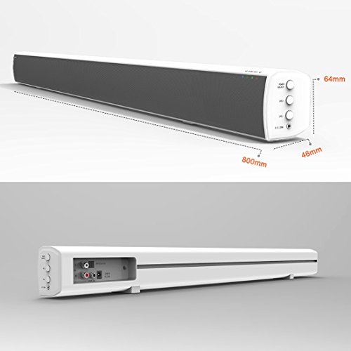 -. Title : TV Sound Bar, 20W×2 Bluetooth Soundbar with Remote, 32 inch 2.0 Channel Home Theater Speakers, Wireless and Wired Bluetooth Audio for TV/PC/ Phones/Tablets (White, 2018 Upgraded)