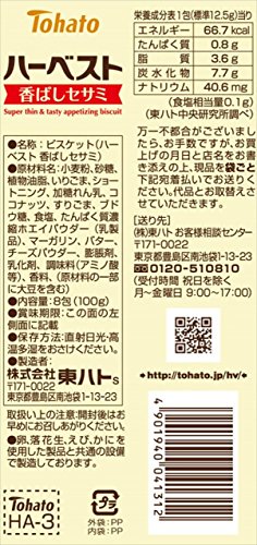 原材料:小麦粉、砂糖、植物油脂、いりごま、ショートニング、加糖れん乳、ココナッツ、すりごま、ブドウ糖、食塩、たんぱく質濃縮ホエイパウダー(乳製品)、マーガリン、バター、チーズパウダー、膨脹剤、乳化剤、調味料(アミノ酸等)、香料、(原材料の一部に大豆を含む)