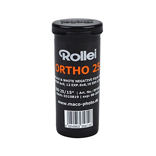 Studio : Rollei Publisher : Rollei Binding : Electronics Product Description The Rollei Ortho 25 is a monochrome photographic film with a nominal sensitivity of ISO 25. The Rollei Ortho 25 is characterized by a high sensitivity reserve of up to two f-stops, depending upon development. The document emulsion offers offers an extraordinary sharpness and extremely fine grain. The Rollei Ortho 25 is suitable for technical-scientific applications and as a half-tone film in the pictorial photography. The highly clear transparent PET substrate opens the possibility of processing as black and white slide film also. 0