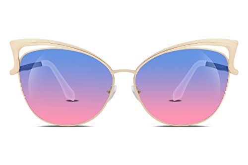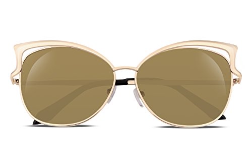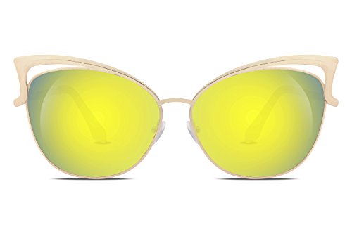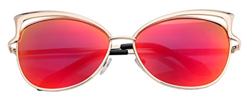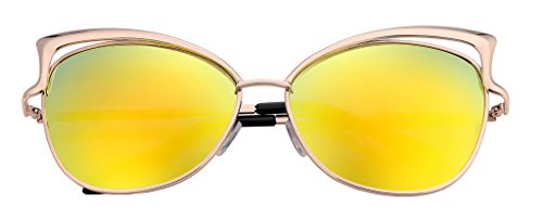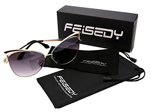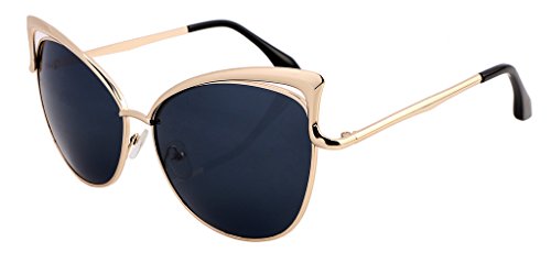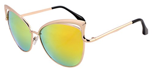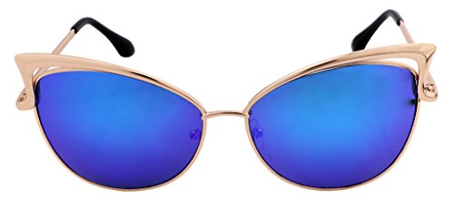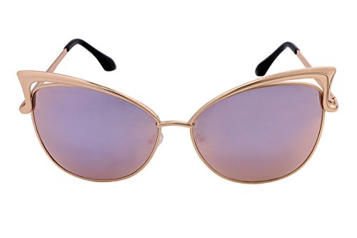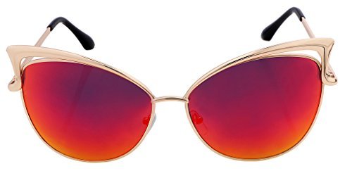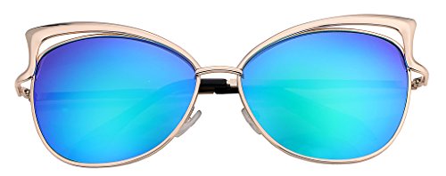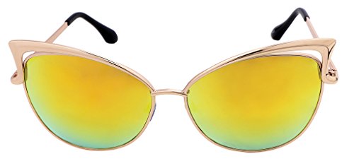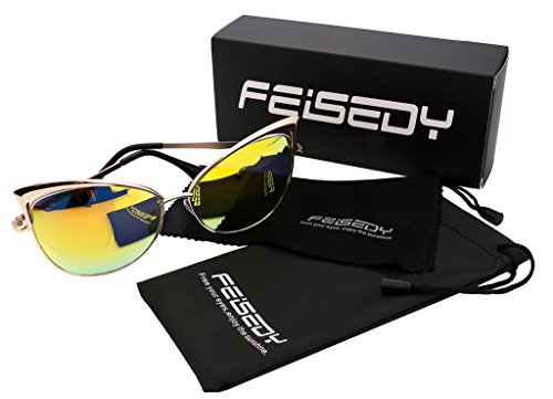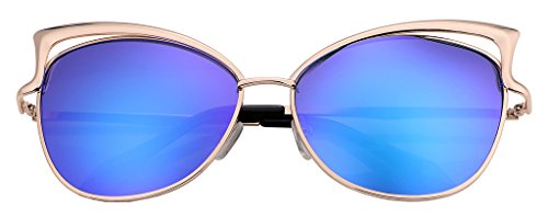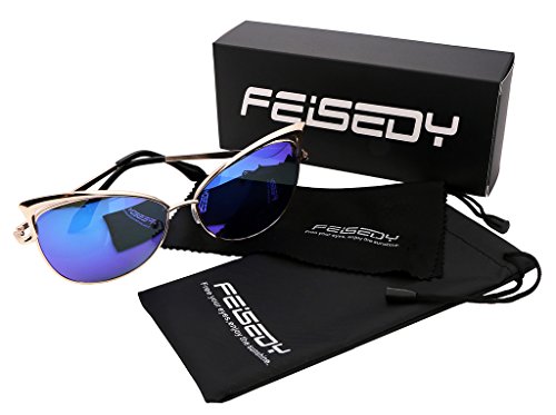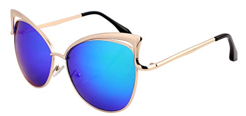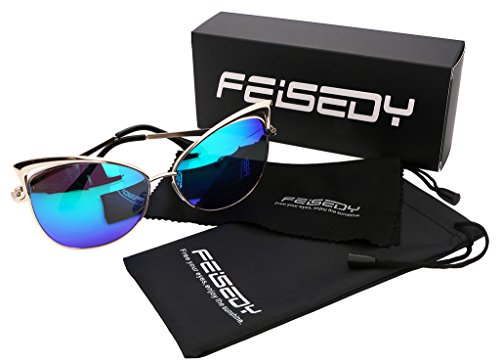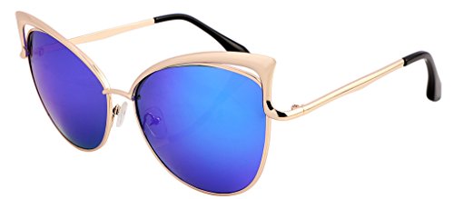 FEISEDY Sexy Cateye Women Sunglasses Oversized Metal Frame Flat Mirrored Lens B1980