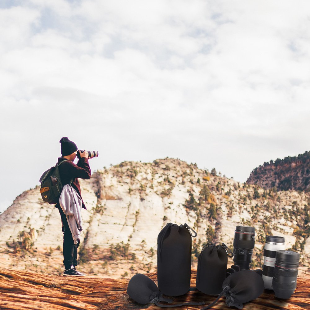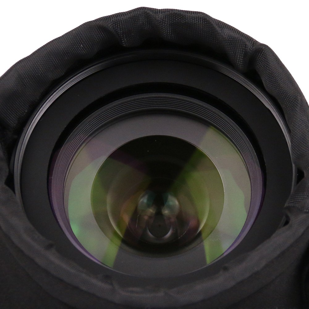 A soft case that stores the lens of an important single lens reflex tightly while protecting it.