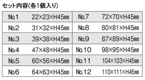 18-8ステンレスを使用した、サイズの違う12個のパテ抜を缶に入れたセットです。