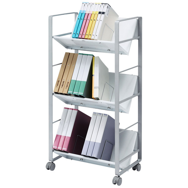 ●棚板が斜めに設置されるので、ファイルなどが取りやすくなっています。