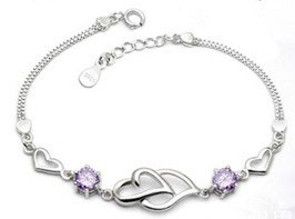 - 925 Long Sterling Silver Necklace Hearts are linked together hand catenary.