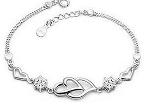 925 Long Sterling Silver Necklace Hearts are linked together hand catenary for Women Girls (silvery)