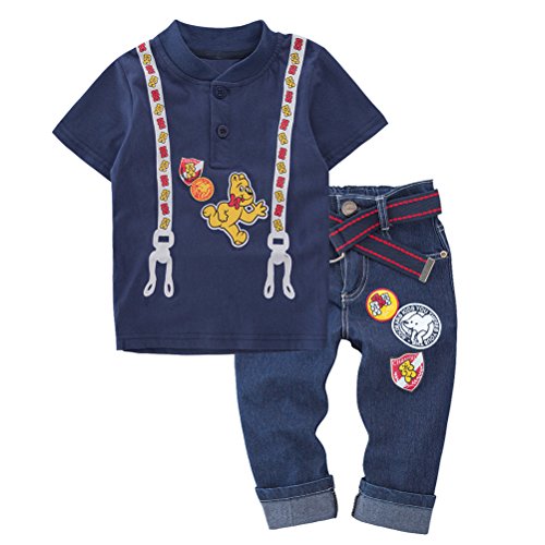 -. Binding : Apparel -. Brand : XM Nyan -. Color : Blue -. Department : baby-boys -. Feature : Size: fit for 1-5Y Kids boys / Color:Dark blue(As pictures show) / New with tag and high quality. / Super cute & soft / Package: short sleeve T shirt*1, short pants*1, waistband*1 -. ProductGroup : Apparel -. ProductTypeName : SHORTS -. Title : May's baby Kids Short Sleeves T-shirts Jeans Waistband 3pieces sets