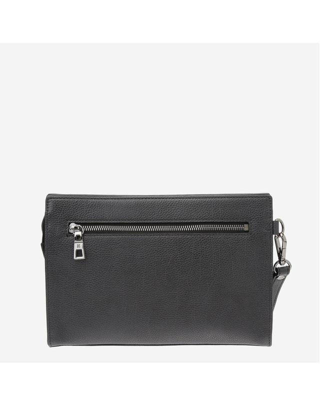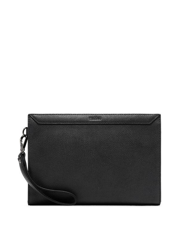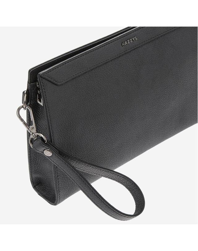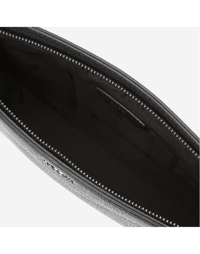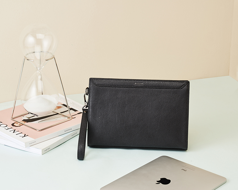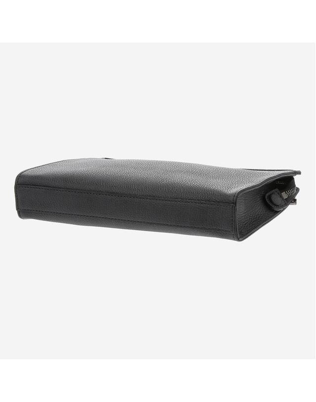 세련된 그레이 컬러의 엠보 가죽 소재를 사용하여 고급스러운 클러치백입니다.