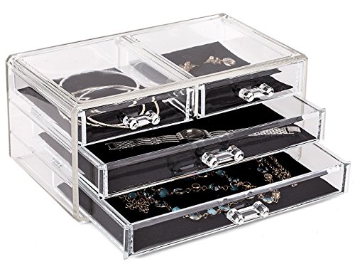 The Estilo acrylic jewelry box organizes all jewelry and cosmetics in one place