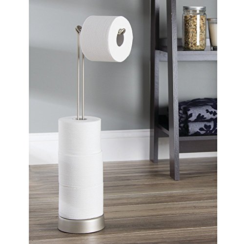 InterDesign Classico Free Standing Toilet Paper Roll Holder for Bathroom Storage - Satin