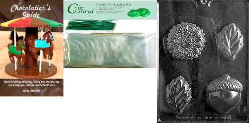 Cybrtrayd MdK25GRBk-F103 Acorn, Sunflower and Leaf Mold Chocolate Candy Mold with Chocolatier's Bundle, Includes 25 Cello Bags, 25 Green Twist Ties and Chocolatier's Guide