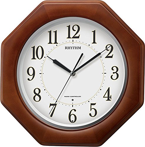 -. Title : リズム時計 掛け時計 電波 アナログ リバライトF490SR 暗所 ライト 自動 点灯 全面 発光 ライト 木 茶 RHYTHM 8MY490SR060