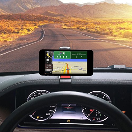 HUD Design & Adjustable Viewing Angle: The HUD simulating design can keep your eyes always on road when you are navigating, picking up a phone call or switching music. The anti-skid holder arms prevent the devices from scratching, and the viewing angle is adjustable.