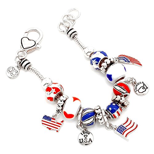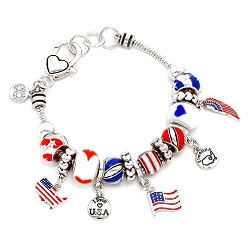 -. Binding : Jewelry -. Brand : Recyclebabe Bracelets -. Department : womens -. Feature : Patriotic Sliding Charm Bracelet Silver Tone 4th of July Memorial Day / Red White Blue Murano Glass Beads Ornate Spacers / Silver Tone 7 to 8 inches Pretty Heart Lobster Clasp / American Flag I Love USA Charms Angel Wing Small Charms / Fast and Free Shipping in the USA in a Gift Box -. Label : NA -. Manufacturer : NA -. Model : NA -. MPN : NA -. PartNumber : NA -. ProductGroup : Jewelry -. ProductTypeName : FASHIONNECKLACEBRACELETANKLET -. Publisher : NA -. Studio : NA -. Title : USA Charm Bracelet Z8 Red White Blue Murano Glass Beads American Flag