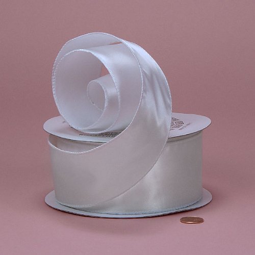 White Cast-Over Wired Satin Ribbon, 1-1/2" X 25Yd