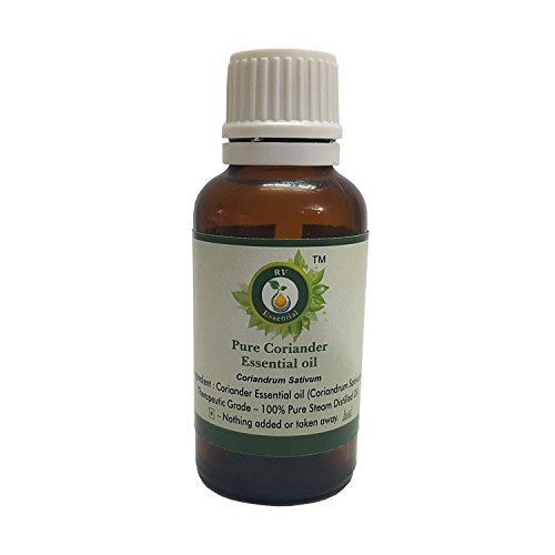 Product Description R V Essential Pure Coriander Essential Oil- Coriandrum Sativum (100% Pure and Natural Therapeutic Grade). Oils are packed in high quality amber glass bottles till 100ml and 300ml, 630ml 1250ml in high quality virgin aluminium bottles. 0
