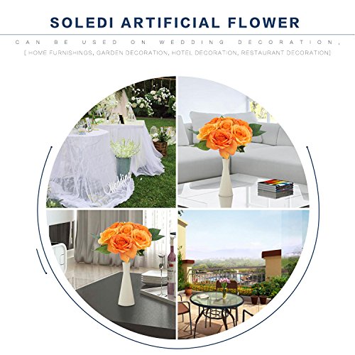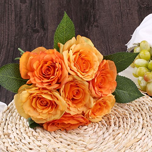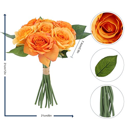 Artificial Roses SOLEDI Fake Silk Flowers 7 Heads Hand Drawn Artistic Roses for Party Wedding Home Bar Decor (Orange)