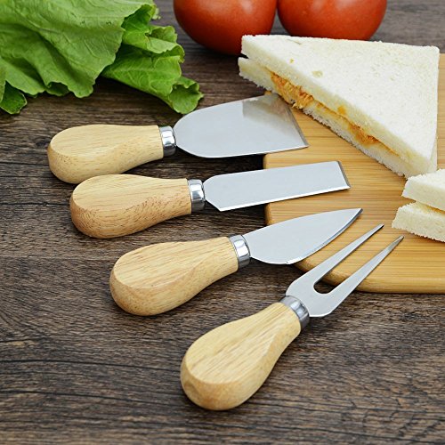 Binboll binboll 4피스 세트 스틸 스테인레스 치즈 슬라이서 치즈 커터 치즈 부엌칼 나이프 with목제 핸들