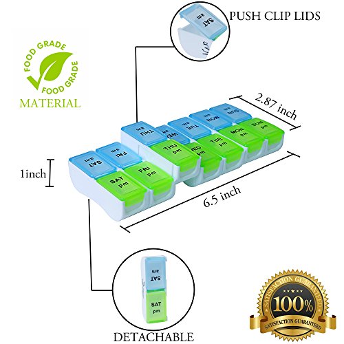 Have All Your Pills And Vitamins Neatly Organized In A Premium Pill Box! Are you tired of searching in chaotic medication cases for your vitamin capsule, pill or supplement? Are you sick of fumbling in packed luggage for your diet tablet at the airport lounge, the hotel room or the sports center? Have you had enough with the little tiny plastic pill bags that cause a mess in your purse or pocket? Well, then you should definitely read on! Ddela Products pill vitamin organizer is coming to put order to all your medication, decluttering your handbag with its compact portable design! A Premium Pill Box Made For Your Peace Of Mind! Made of translucent plastic and featuring 14 DETACHABLE compartments that can easily be removed depending on your needs, this pill box is all you need for pill and vitamin organization. With a novelty VERSATILE design, it can be used as a weekly or a 14-day planner, due to the 2 separate parts for AM PM each day. Never Again Will You Forget A Pill! Easily portable on your out and about, this pill case will carry your medication on your travels, on your training sessions, or just on a refreshing walk down the mall! Take all vitamins and pills with you or DETACH JUST 1 COMPARTMENT for a short 1-Day absence! Offer A Thoughtful Gift! Stylish, functional, strong and affordable, Ddela Products pill organizer makes the best gifting idea to the health conscious friend, to the granny, the mom or the co-worker. Offer it on all occasions and show off your care to the ones you love! So, Wait No More Indulge Yourself! Click Add To Cart NOW for Excellent Organization of All Your Pills Vitamins! 0 |