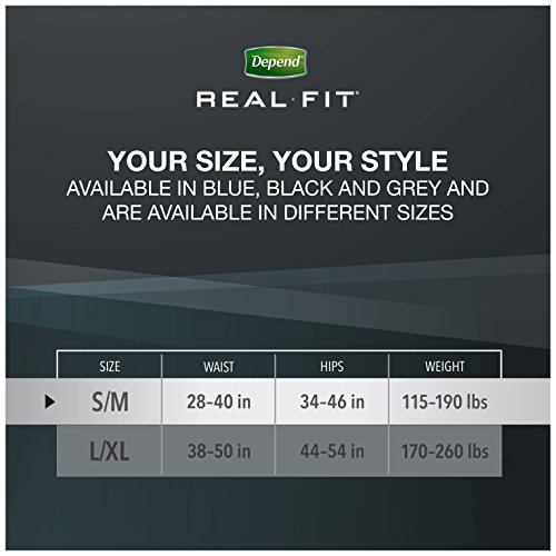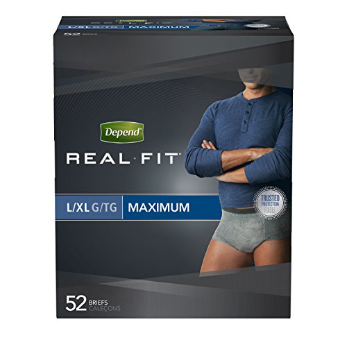 Depend Real Fit Incontinence Briefs for Men, Maximum Absorbency, L/XL, Grey (Pack of 52) Packaging May Vary