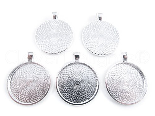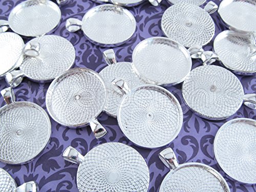 20 CleverDelights Round Pendant Trays - Shimmering Silver Color - 25mm 1" Diameter - Pendant Blanks Cameo Bezel Cabochon Settings - 25 mm 1 Inch
