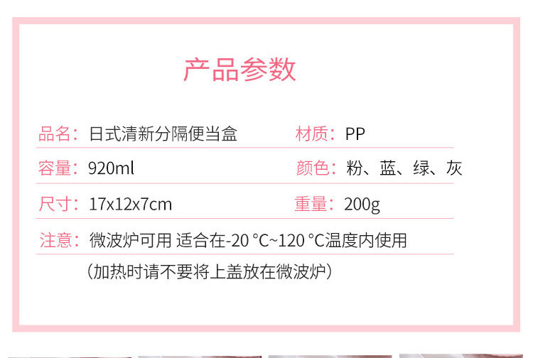 宝贝名称  日式清新分隔便当盒  材   质 PP