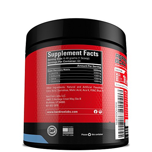 Build Muscle. Burn Fat. Recover Faster. Drink with Pride Hard Iron Labs is a brand of integrity and puts the health of is customers first. Our primary goal is to provide the highest quality supplements using clinically proven ingredients at the lowest prices in the industry. With our supplements you don't have to compromise the quality, especially when it comes to the most important thing; your health! All of our products are manufactured in a cGMP manufacturing facility and each batch is 3rd party tested. 5000 MG BCAAS Scientifically proven ratio of 2:1:1to help with Muscle Growth & Performance. Refresh BCAA is the most proven BCAA drink powder loaded with 5000 milligrams of BCAAs, 2000 mg of Leucine, 1000 mg of Isoleucine, 1000 mg of Valine, and 1000 mg g of Glutamine. Refresh BCAA will keep you hydrated and ready for more. Refresh BCAA is the best zero calorie option to help you blast through your workouts.Feature