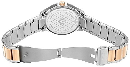 -. Feature : Two-tone watch featuring 16k gold-layered bezel, quilted dial with Swarovski crystals, and decorated caseback / Swiss quartz movement with analog display / Protective Krysterna crystal dial window / Features fold-over clasp with double push-button safety closure, sword-shape hands, and logo on dial / Water-resistant to 50 m (165 feet) / Packaging may vary