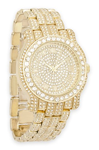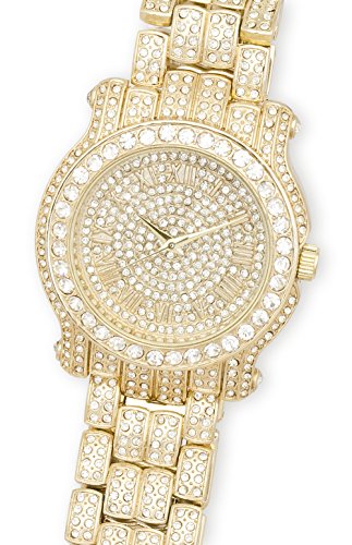 Iced Out Gold Watch with Matching Bling Gold Bracelet in Gift Box