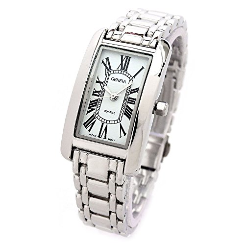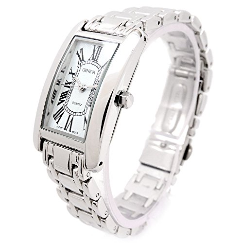 Geneva Silver Bracelet Rectangle Face Classic Roman Hours Women's Jewelry Bracelet Watch