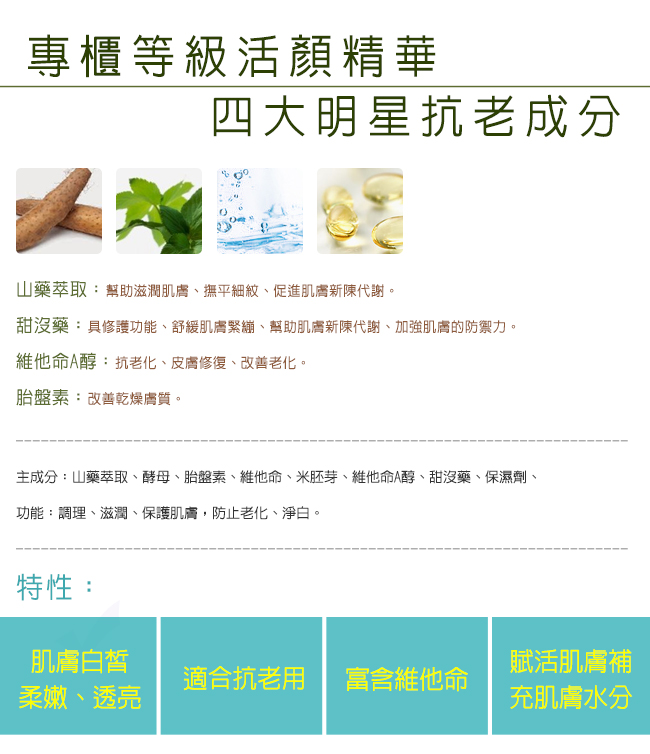 Bring whitening skin with tender and brightening texture. Reverse time to young skin with the age of 25.