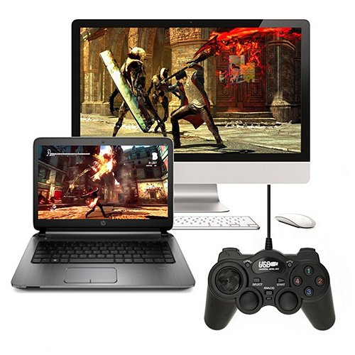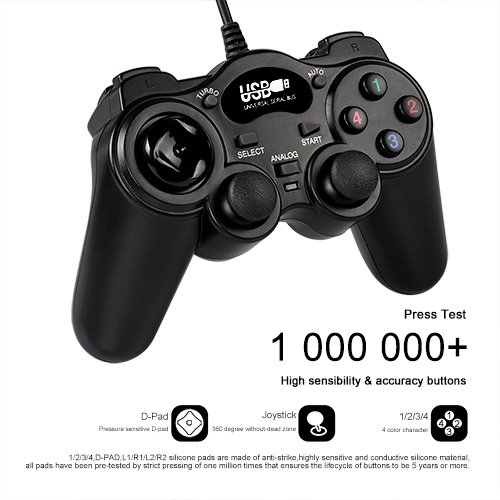 Reccazr GP003 Black USB Wired Gamepad with Dual Shock Joystick for PC Computer/Laptop Windows games.Experience the console-style gaming you crave on your PC.