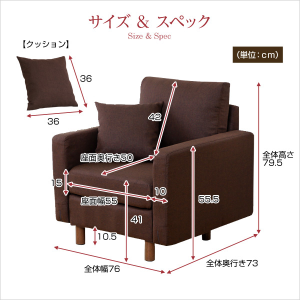ソファ本体外寸:(約)幅76x奥行き73x高さ79.5cm