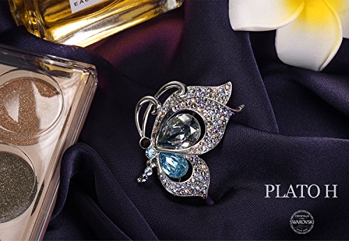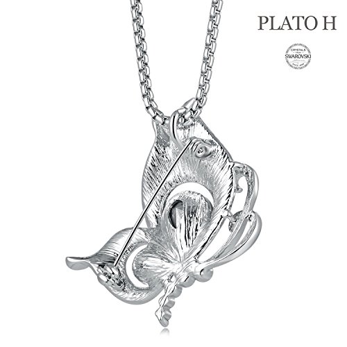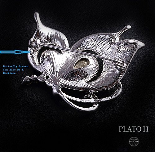 -. Feature : This Butterfly Brooch Can Also Be Wear As A Necklace. AUTHENTIC: 100% Genuine SWAROVSKI ELEMENTSA Crystals & HIGH QUARLITY Rhodium Plated Alloy / MEASUREMENTS: Weight: 0.45 ounces, Length:1.37 inches,Width:1.22 inches. PLATO H is the jewelry brand that is an Ingredient Branding Partner of SWAROVSKI (Brand Contract ID:SWA-17562-Y1S3Q7) / APPLICATION: Nice GIFT for her on Birthday, Wedding Anniversary, Valentine's Day, Christmas, Mother's Day, etc / GIFT BOX: All PLATO H Designs are Packaged in a SEALED Gift Box, Perfect for Any Occasion. / Package Includes: This Cute Butterfly Brooch Necklace (without chain)+Instruction Book+Cleaner Jewelry Cleaning Cloth(With PLATO H Logo) Nice GIFT for her on Birthday, Wedding Anniversary, Valentine's Day, Christmas, Mother's Day and any other Big days.
