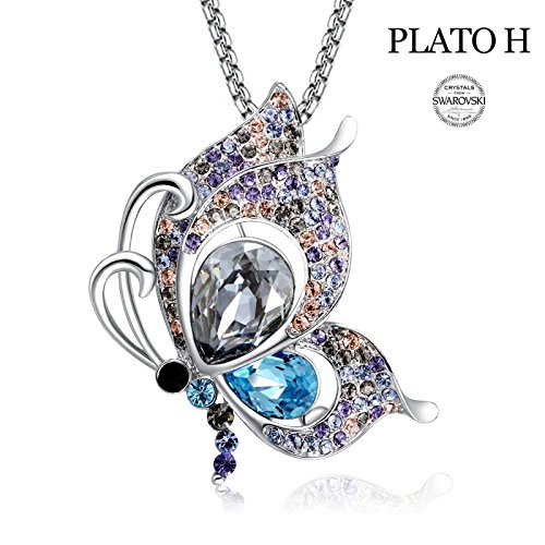 -. Title : Cute Butterfly Crystal Brooch Necklace PLATO H Elegant Butterfly Brooch with Swarovski Crystals Women Fashion Jewelry Romantic Gift for Her