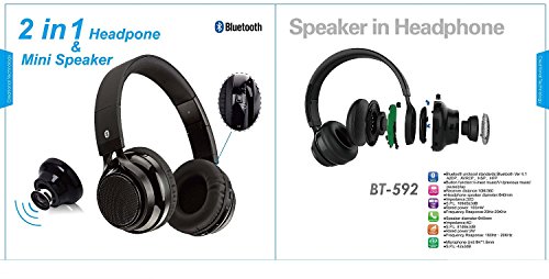 -. Binding : Wireless Phone Accessory -. Brand : Beyution -. Color : black -. EAN : 0701203649194 -. Feature : Newest Bluetooth Headphones + Bluetooth Speaker 2 in 1 Newest advanced Bluetooth Headphones. / This is creational technology. Not only a Wireless Bluetooth Headphone, But also can use as a Wireless Mini Speaker. / you can enjoy with using Bluetooth Headphones and Bluetooth speaker. Can work well with Iphone 6/5s/5c/5/4s/4; ipad series/ ipod/ itouch/ Mac laptop; Samsung S5/S4/S3/S2; Note 4; Note 3; Note 2 and Samsung Galaxy all Tablet; Nokia Toshiba Sony and HTC; ATT; BlackBerry Smart phone and devices; most Mac and Bluetooth-enabled PC laptops and all Tablet and desktops / Built-in Mic-phone with noise cancellation technology; Built in 1000mAh Li-battery Battery, up to 25 hours Headphone play time, up to 3 hours speaker play time. also can Talk with Phone. / USA Seller, quick shipping! 30 days Warranty! -. Label : beyond solution inc -. Manufacturer : beyond solution inc -. Model : Beyution-BT592-Black -. PackageQuantity : 1 -. ProductGroup : Wireless -. ProductTypeName : WIRELESS_ACCESSORY -. Publisher : beyond solution inc -. Studio : beyond solution inc -. Title : New Beyution Brand Creational Design --- 2 in 1 Bluetooth Headphones + Bluetooth Speaker Hi-fi Stereo Wireless Headphones Built in Mini-speaker -. UPC : 701203649194