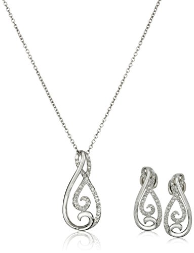 Sterling Silver and Diamond Infinity Pendant Necklace and Earrings Jewelry Set (1/10 cttw)