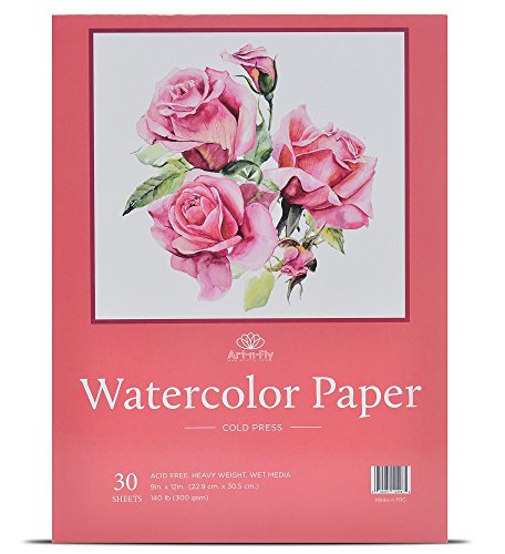 30 Sheets 9 X 12 Watercolor Pad (140lb/300gsm) Fold Over Design Cold Press Watercolor Paper