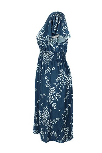 Slip into this simple and beautiful casual spring summer printed patterned medium length midi sun dress. Perfect for casual occasions out to the beach or relaxing around at home. Pairs well with all your accessories and footwear. Smocked detailing at shoulders at in a stretchy empire waistline. Sleeveless and ruffled flutter short sleeve design with a floral flower patterned print throughout all over. Self tie drawstring at shoulders and a ruffled short sleeve design for a cute and chic silhouette. Various necklines: Asymmetrical, scoop, and tube fitted designs. Lightweight and stretchy 98% polyester 2% spandex.Feature