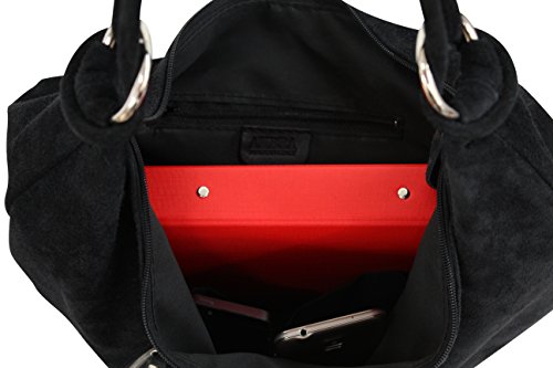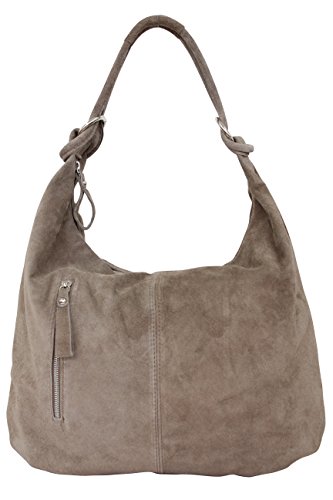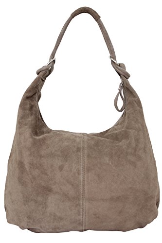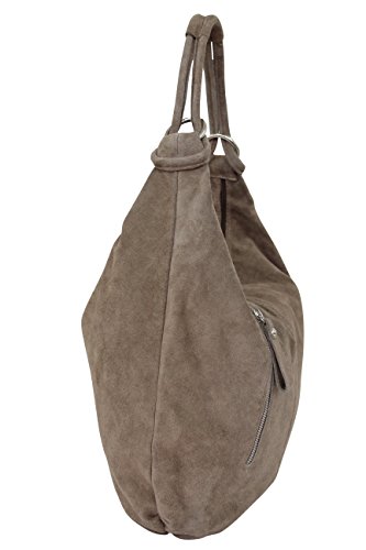 AMBRA Moda Damen Wildleder Handtasche Schultertasche Beutel Hobo Bag Veloursleder Suede XXXL WL808 (Taupe)