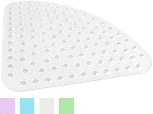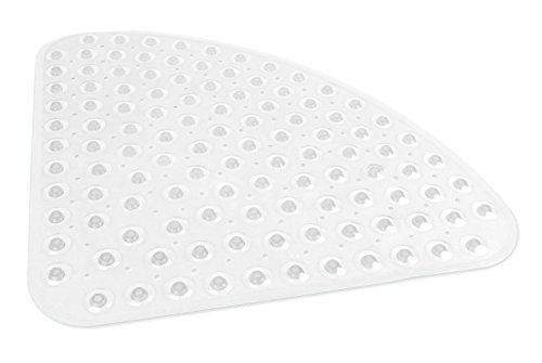 DII Oceanique Shower/Bathtub 20.25x20.25" Non Slip Transparent Safety Grip Suction Cups Rounded Triangle Vinyl Bath Tub Mat, Small, Clear