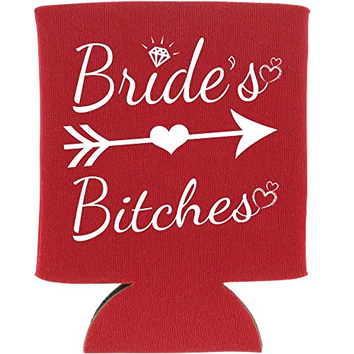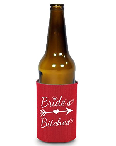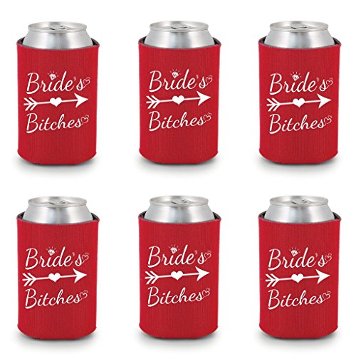 Shop4Ever Bride and Bride's Bitches Can Coolie Wedding Drink Coolers Coolies Red - 6 Pack