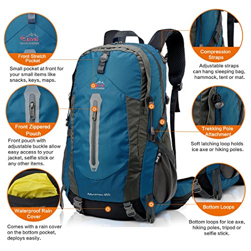 -. Title : EYE 45L Hiking Backpack Outdoor Sports Backpack Water-resistant Daypack Travel Camping Backpack, with Grid Bearing System